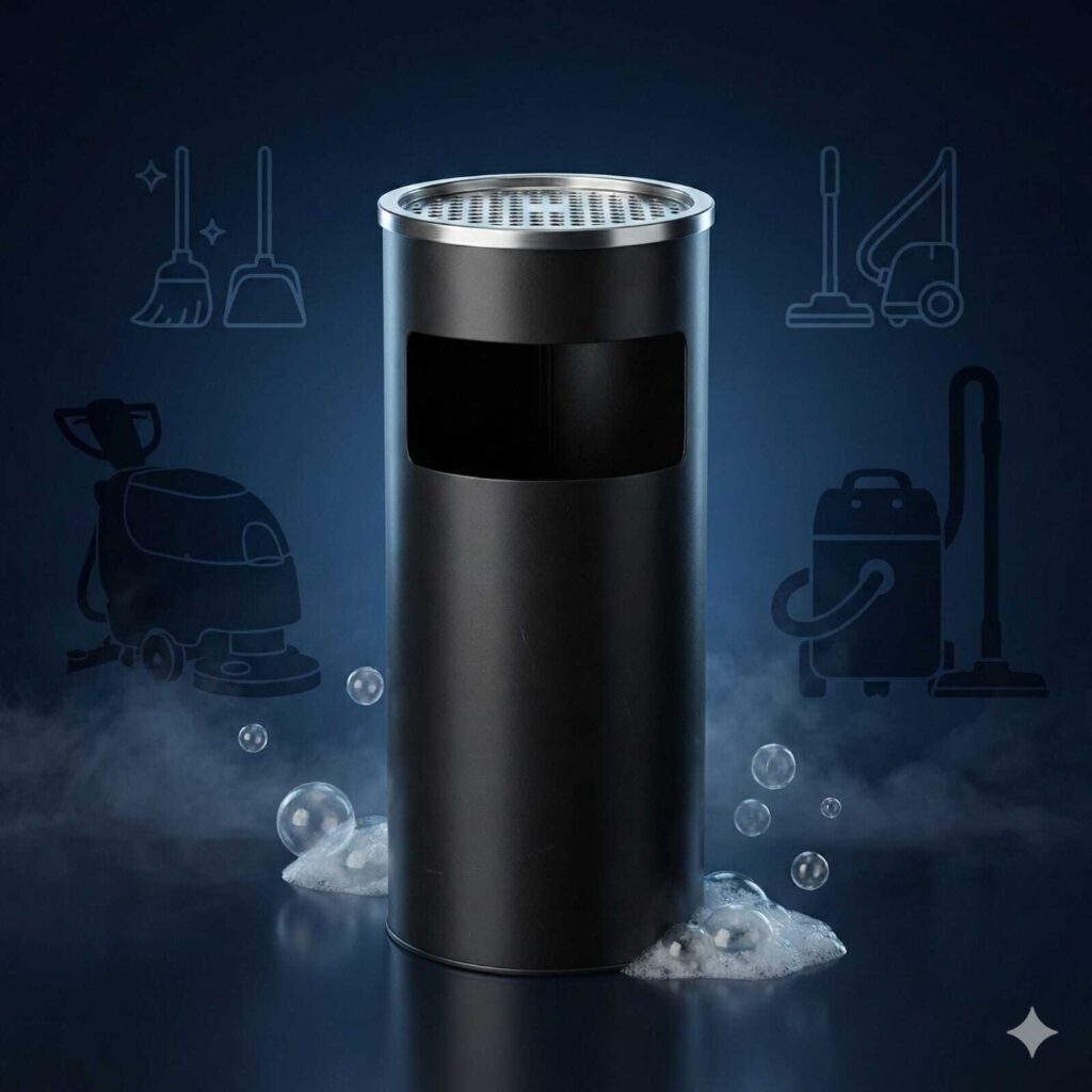 Professional Standing Ashtray and Trash Can Combo is a sleek, dual-function solution designed for high-traffic commercial and public areas.