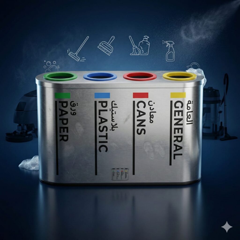 This 4-compartment waste segregation bin is designed for efficient and hygienic waste management in commercial.