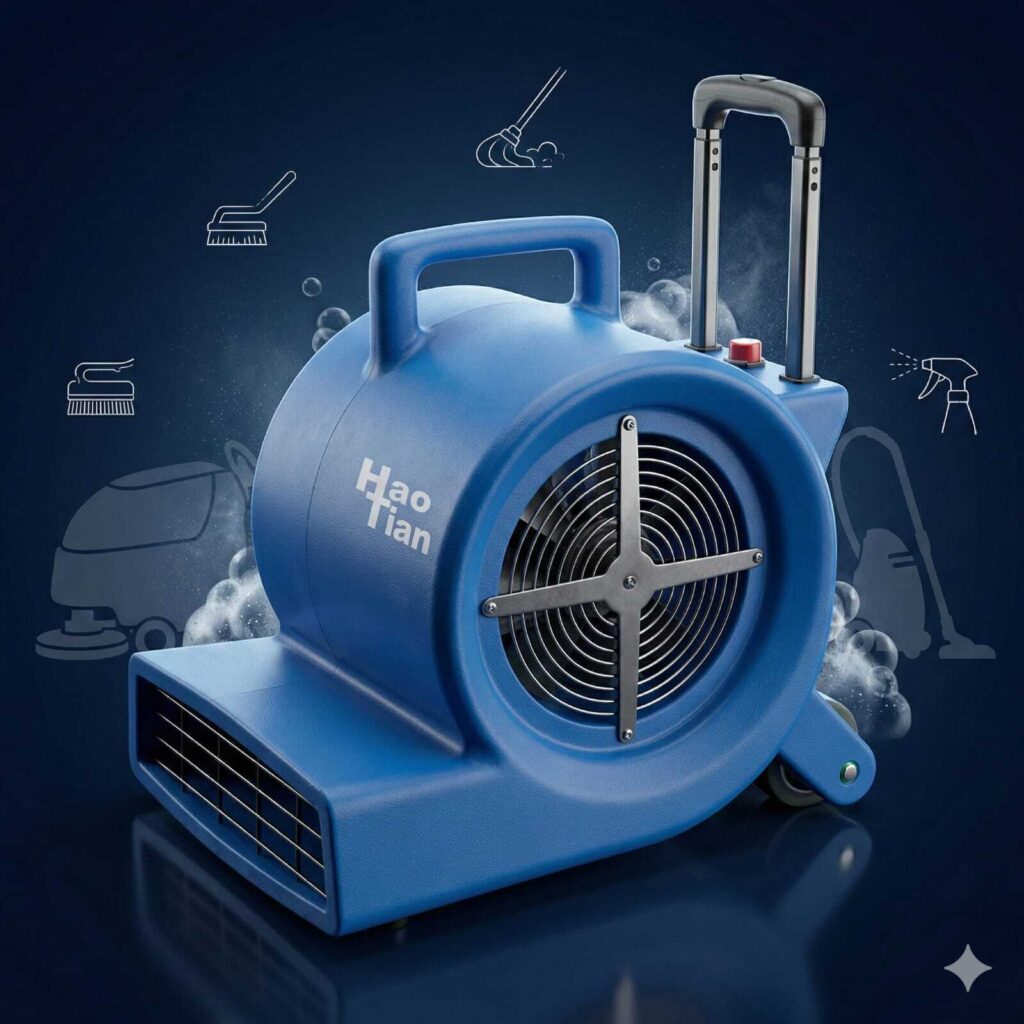 Hao Tian Professional 3-Speed Industrial Air Mover – Heavy Duty Carpet Dryer & Floor Fan with Telescopic Handle and Wheels.