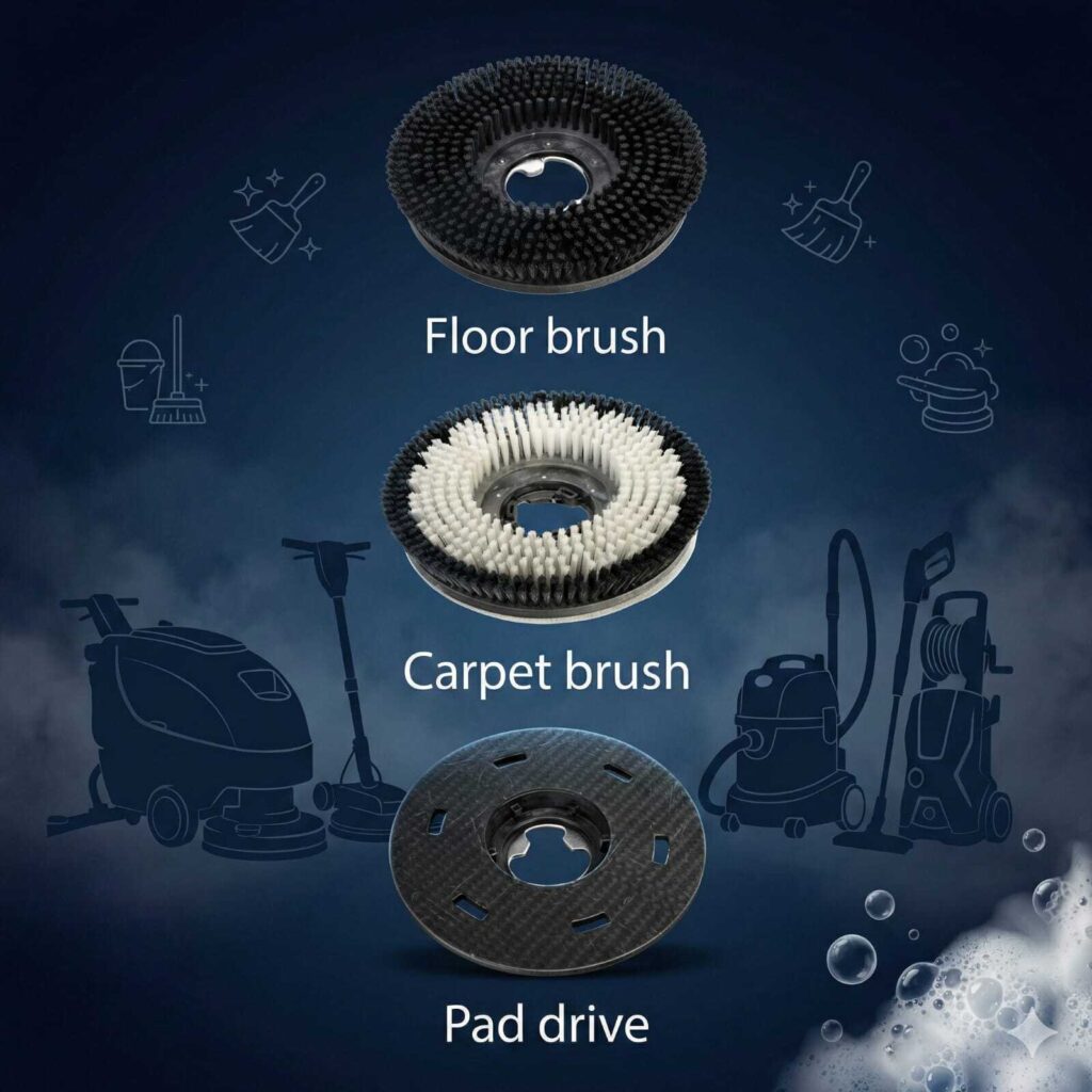 This set provides the essential tools needed to transition seamlessly between heavy-duty scrubbing, carpet cleaning, and high-speed