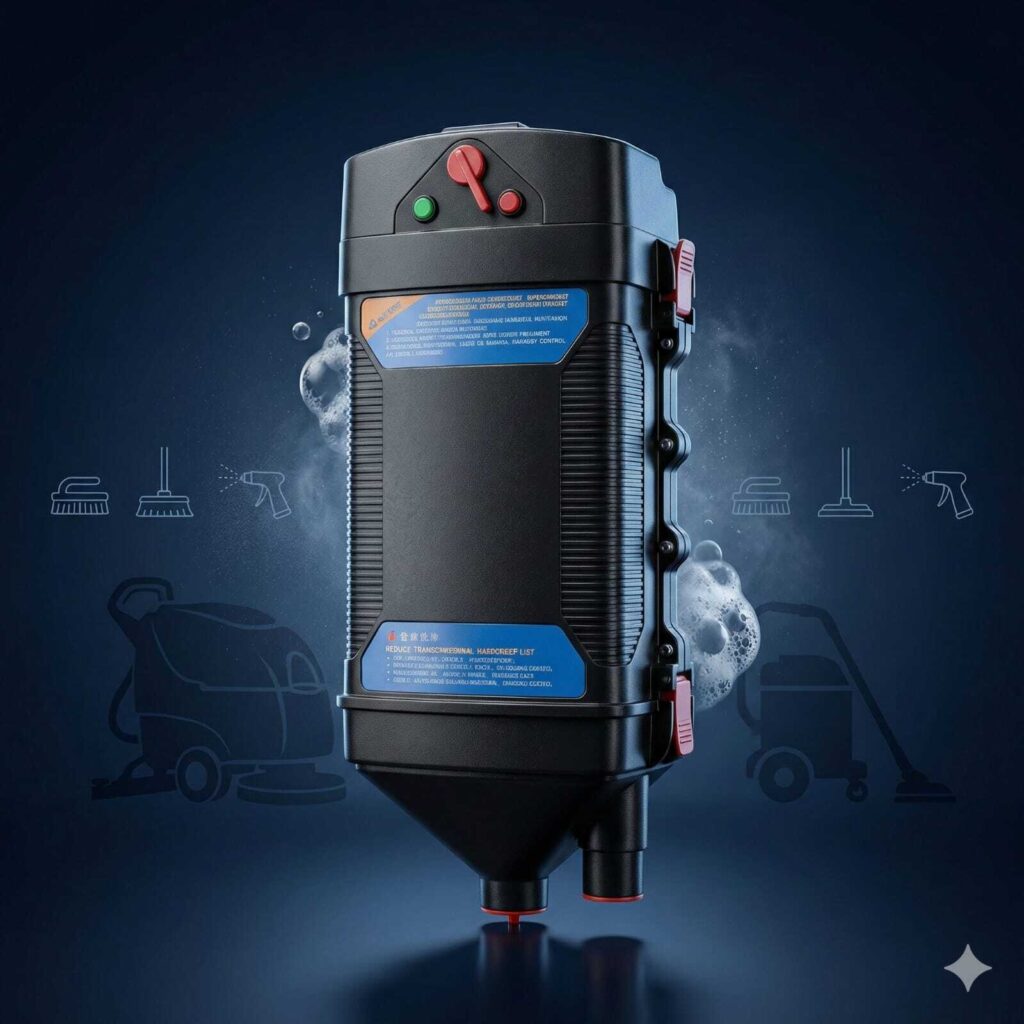 industrial-grade component is designed for heavy-duty commercial cleaning systems, serving as a robust housing or filtration unit for high